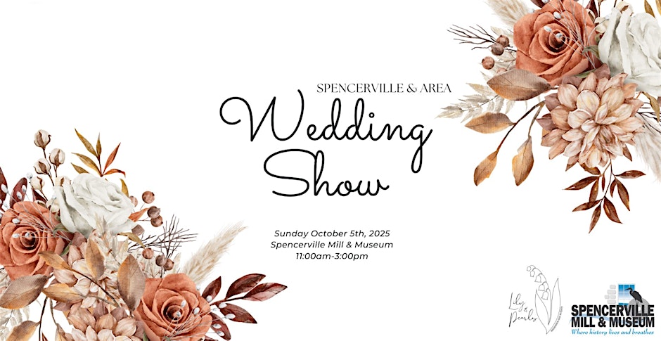 Join us at the historic Spencerville Mill & Museum for the Spencerville & Area Wedding Show, presented in collaboration with Lily & Pearls Weddings and Events.